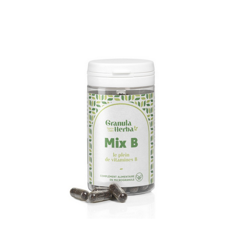 MIX B de Granula Herba est une synergie de haute précision réunissant les 8 vitamines du groupe B, indispensables à la "centrale énergétique" de vos cellules.