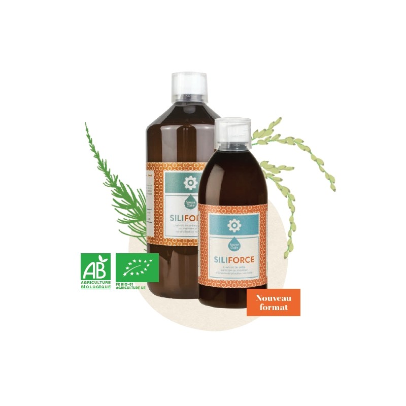 SILIFORCE est une solution de silicium organique d'origine végétale, formulée par Michel Dogna pour Source Claire, afin de redonner de la structure et de la souplesse à l'organisme.