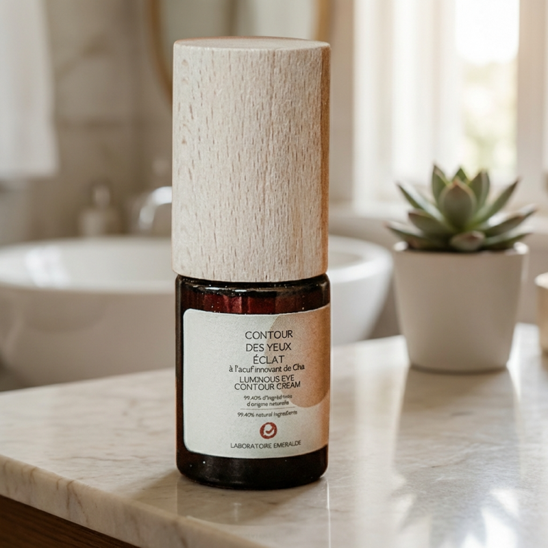 Le CONTOUR DES YEUX ÉCLAT du Laboratoire Émeraude est un soin revitalisant spécifiquement formulé pour la zone fragile du regard, associant haute naturalité et performance technologique.