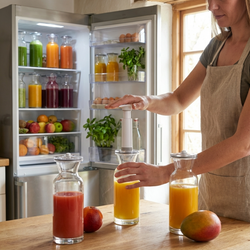 Cette carafe et son couvercle au design rafiné vous permettra de conserver 2 à 3 fois plus longtemps vos jus de fruits ou de légumes, soupes, smoothies ...