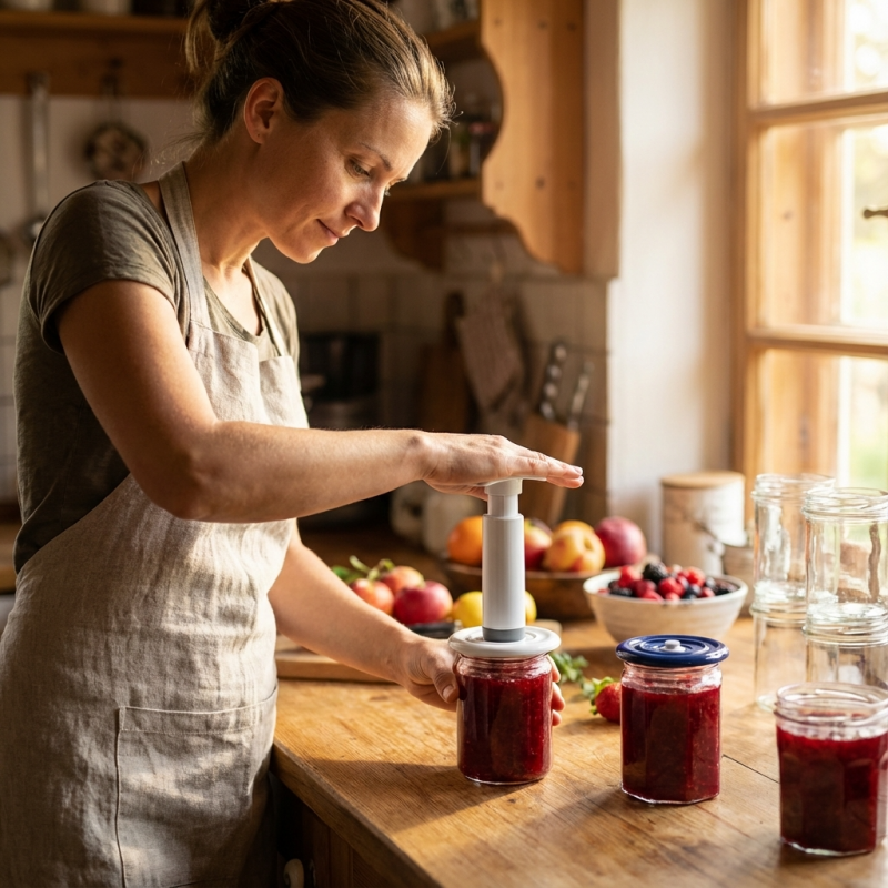Couvercle universel 8,2 cm s'adapte sur bocaux de diamètre 4 à 7,5 cm à mettre sous vide avec la pompe manuelle Status.