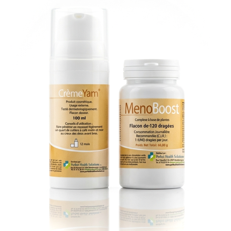 Le Pack Confort Menopause est composé de 2 produits : la Crème Yam et le MenoBoost. Une combinaison conçue pour contrer les troubles de la ménopause !