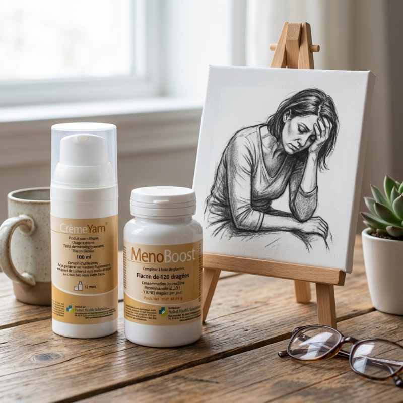 - Participe à réduire les bouffées de chaleur, variations d’humeur et sécheresse