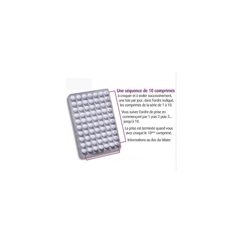 | Ordre de prise | Croquer et avaler les comprimés successivement de 1 à 10. |