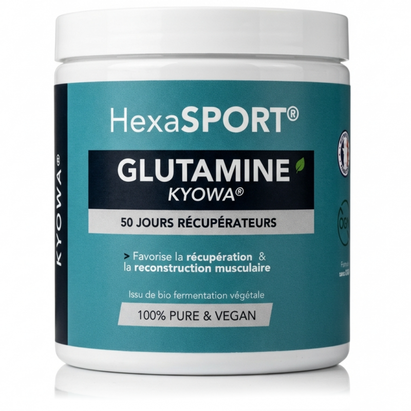 La L-GLUTAMINE KYOWA VEGAN - 250 g - Hexa3 est un acide aminé de grade supérieur, indispensable pour soutenir la réparation des tissus musculaires et l'intégrité de la paroi intestinale.