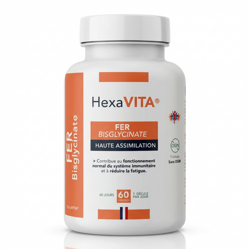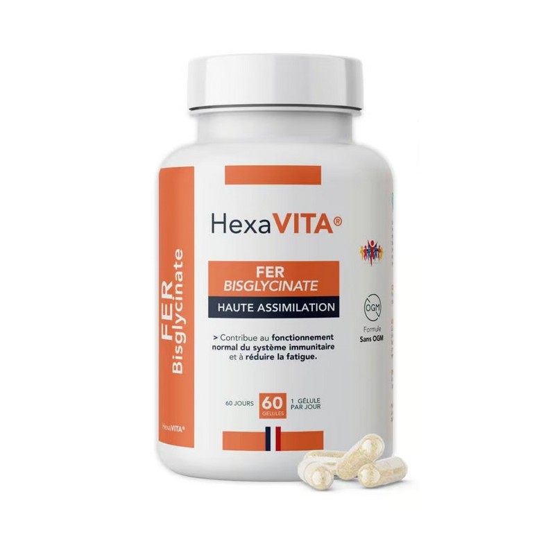 FER BISGLYCINATE - 60 gél. - Énergie & Immunité - Hexa3