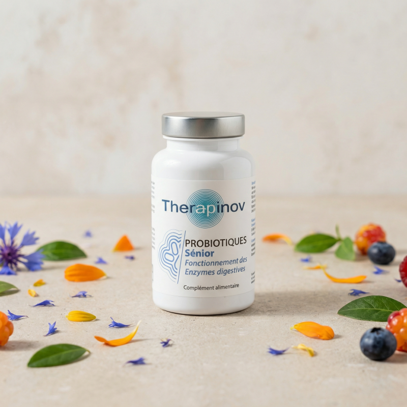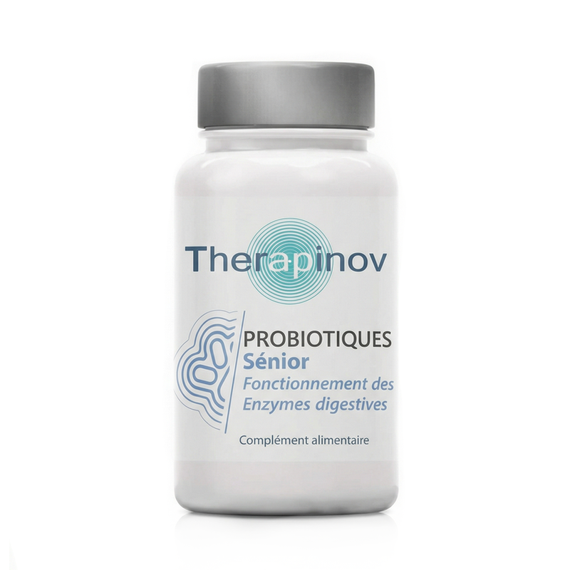 Le complexe PROBIOTIQUES SENIOR de Therapinov est une réponse de haute précision aux évolutions du microbiote liées à l'âge, conçu pour maintenir l'équilibre et la vigueur de l'organisme.