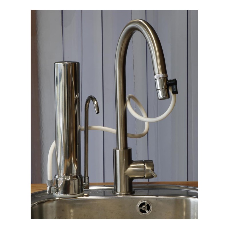 Le purificateur sur évier Aragon Aqua Inox combine durabilité et haute performance de filtration.