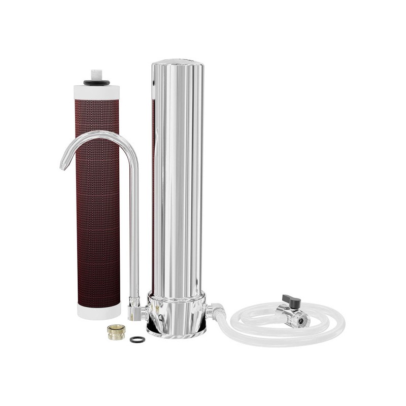 Le purificateur ARAGON AQUA GEYSER INOX est le sommet de la filtration sur évier, alliant la robustesse de l'acier inoxydable à la technologie de filtration la plus avancée au monde.