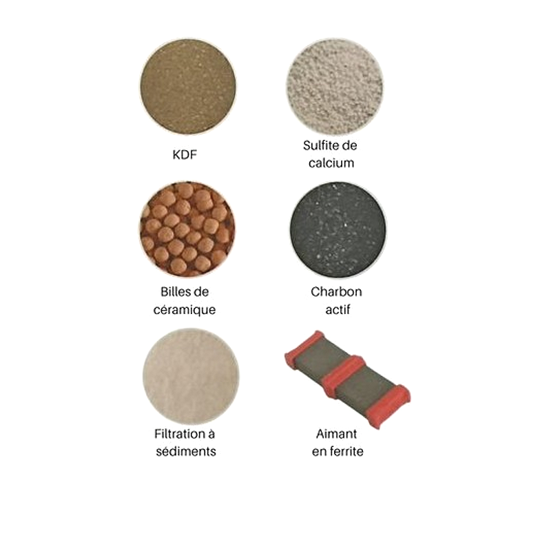 Technologie de filtration avancée : Ce purificateur utilise un média filtrant spécifique capable de neutraliser jusqu'à 99% du chlore, mais aussi de réduire la présence de métaux lourds et d'inhiber la prolifération des algues et bactéries dans votre installation.