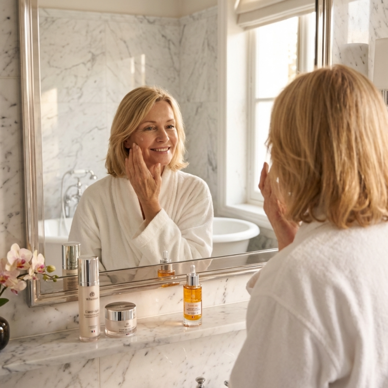 Ne négligez pas votre décolleté et le dos de vos mains ! Ce sont des zones qui trahissent souvent l'âge car elles sont exposées au soleil. Appliquez le reste de sérum présent sur vos mains après votre soin visage sur ces zones pour prévenir les taches et le froissement de la peau.