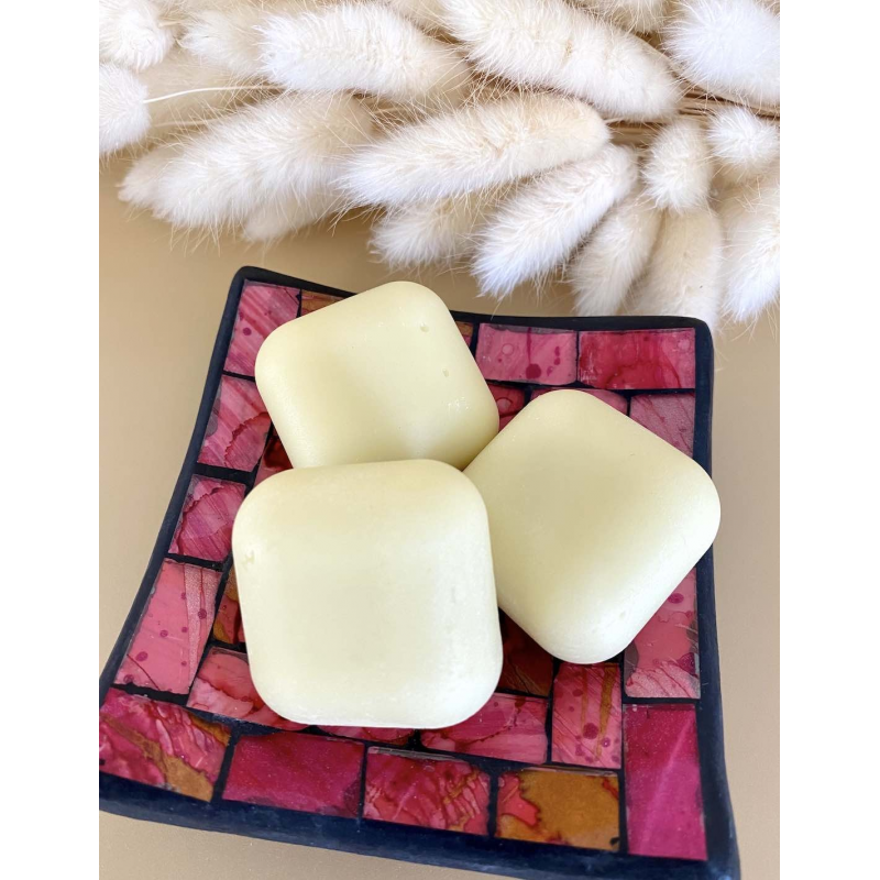 | Application | Passez le carré sous l'eau chaude et frottez-le dans vos mains pour créer une crème fine. Appliquez sur les longueurs. Pour les cheveux très longs, faites glisser le carré directement sur les pointes mouillées. |