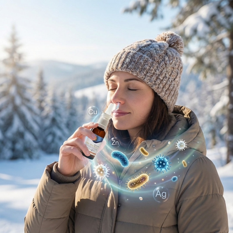 • Trio d'oligo-éléments ionisés (Cu-Zn-Ag) pour une action renforcée