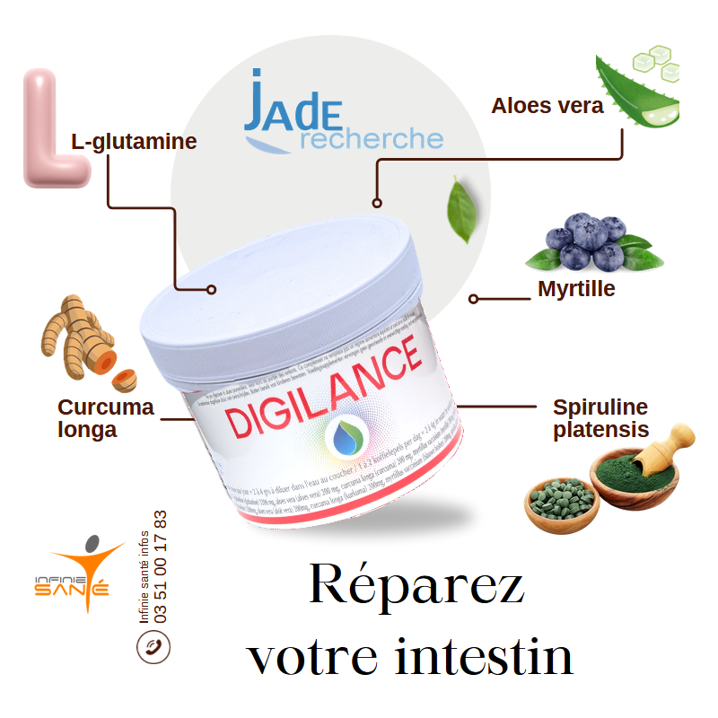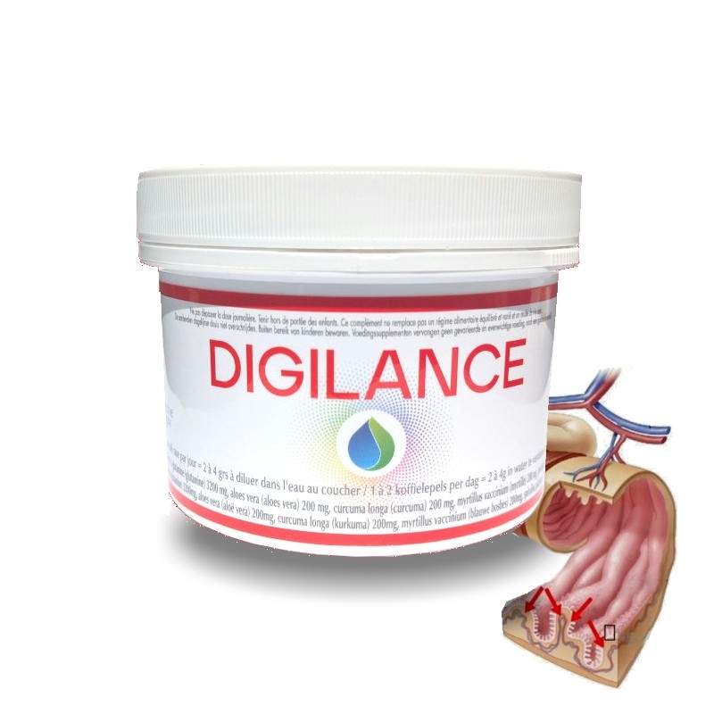 Digilance contribue également à la réparation de l’intestin, ce qui indirectement soulage les symptômes douloureux déjà nommés plus hauts.