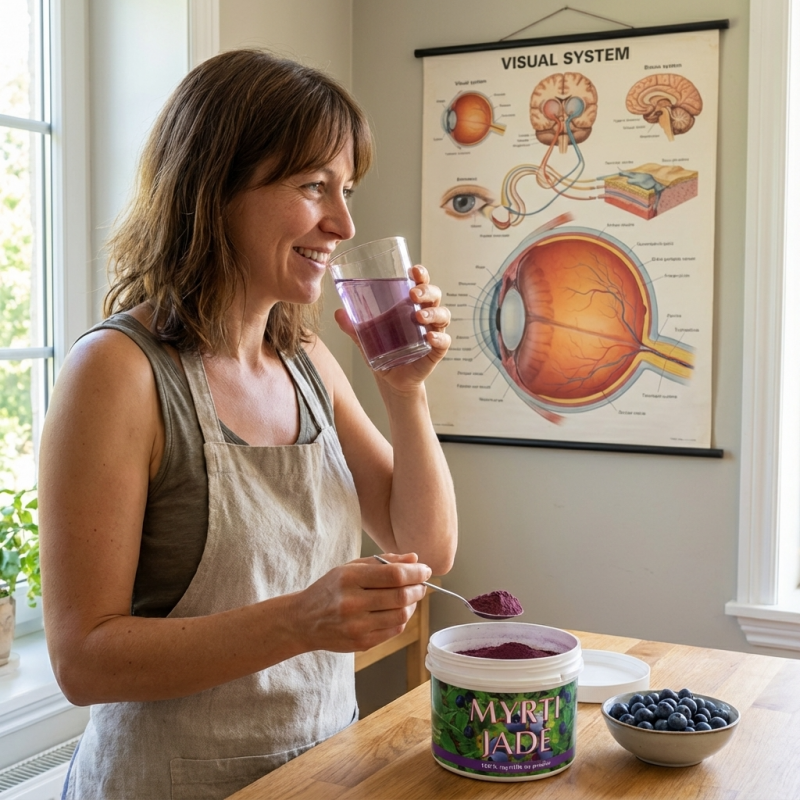 Pour favoriser une absorption optimale de vos anthocyanes, consommez votre Myrti Jade lors d'un repas contenant de bons lipides. Les acides gras facilitent le transport de ces pigments précieux vers votre rétine, renforçant ainsi l'efficacité de votre cure visuelle.