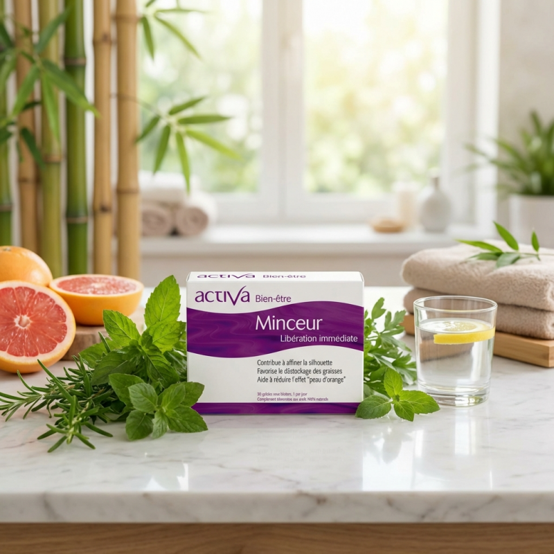 Le complexe Bien-être Minceur d'Activa est une association de nutriments d'origine naturelle qui pourraient contribuer au maintien de l'équilibre général et accompagner l'organisme dans la gestion de ses ressources.