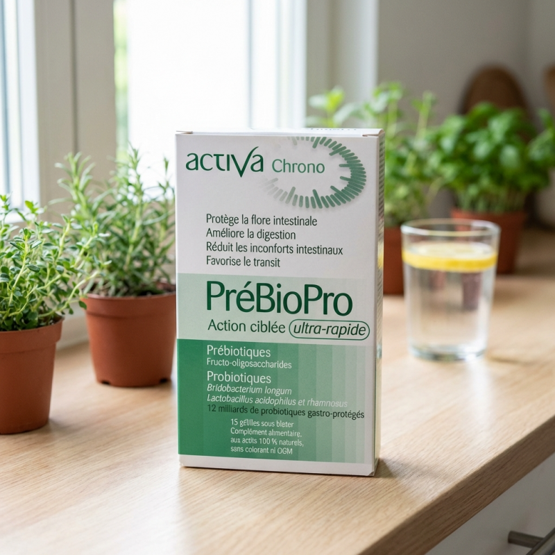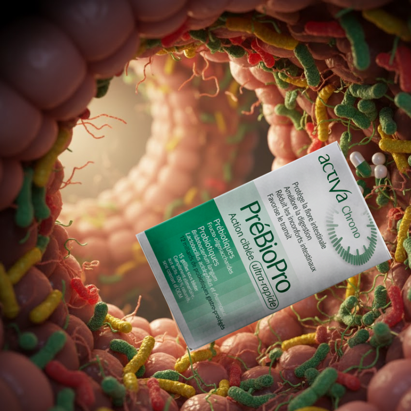 Le complexe CHRONO PREBIOPRO d'Activa est une solution naturelle à action ultra-rapide, conçue pour restaurer immédiatement l'équilibre de la flore intestinale lors de perturbations soudaines.