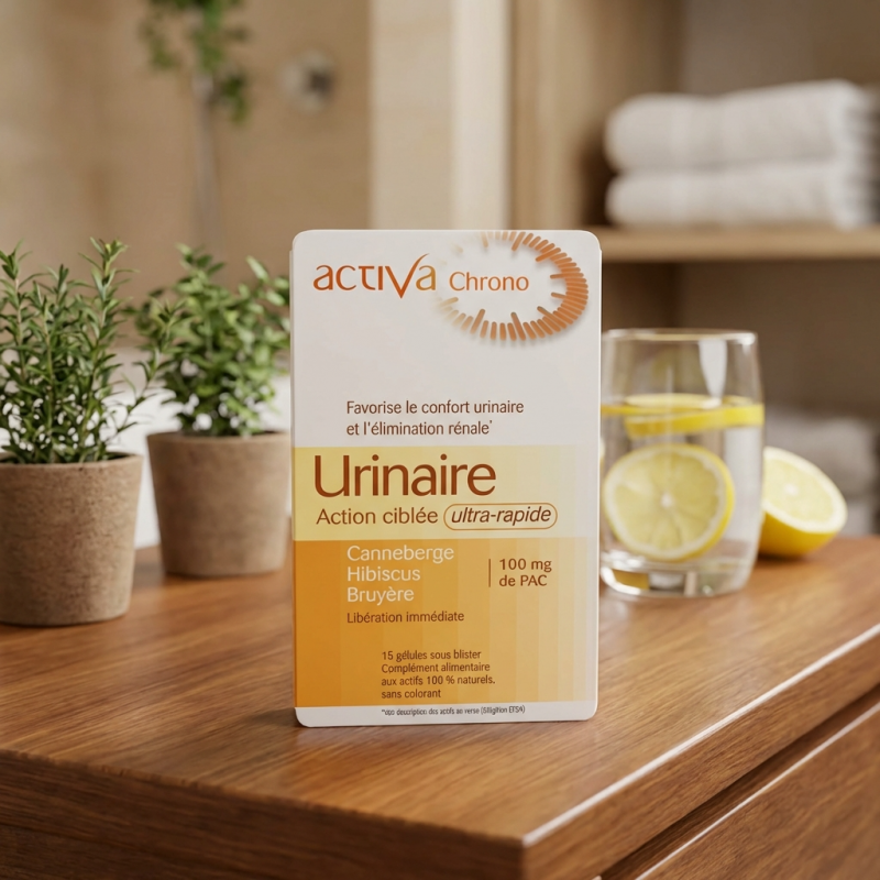 Le complexe CHRONO URINAIRE d'Activa est une solution naturelle à action ultra-rapide, spécialement formulée pour apaiser les gênes urinaires et favoriser une élimination rénale saine.